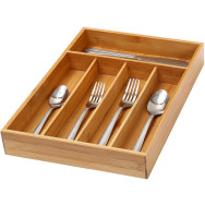 Expandable Bamboo Cutlery Tray with 5 Compartments (Expands to 7 Sections)