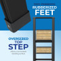 Anti-slip ribbed steps for added security and slipping prevention, the steps are made from high-quality brushed aluminum, providing strength and style. Rubberized feet keep the ladder from slipping and prevents your floor from getting scratched during use. Extra-large, the oversized top platform provides a safe, stable, and comfortable place to stand and eliminates fatigue