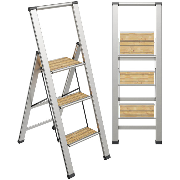 Bamboo Step Ladder with Silver Frame