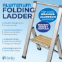 Whether you're looking for a great step ladder for your home, garage, office or on the go, this handy Aluminum ladder is your perfect choice! Whether you need the extra height for cleaning, washing a window, painting or other tasks around your home and office. It's an ideal choice for either your home or shop!