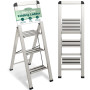 Whether you're looking for a great step ladder for your home, garage, office or on the go, this handy Aluminum ladder is your perfect choice! Whether you need the extra height for cleaning, washing a window, painting or other tasks around your home and office. It's an ideal choice for either your home or shop!