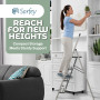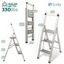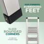 Anti-slip ribbed steps for added security and slipping prevention, the steps are made from high-quality brushed aluminum, providing strength and style. Rubberized feet keep the ladder from slipping and prevents your floor from getting scratched during use. Extra-large, the oversized top platform provides a safe, stable, and comfortable place to stand and eliminates fatigue