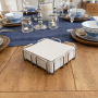 The flat square design provides stability, ensuring that napkins are neatly contained and easily accessible. Its minimalist aesthetic complements a variety of table decors, while the open wire structure allows for adequate ventilation, preventing napkins from becoming damp.