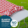 Enjoy the perfect, snug fit for different tables, whether at a picnic, trade show, or any folding table setting. The smartly incorporated elastic, stretchable corners ensure thatour tablecloths stay securely in place—no more messy accidents in windy weather, and no need for additional clips.